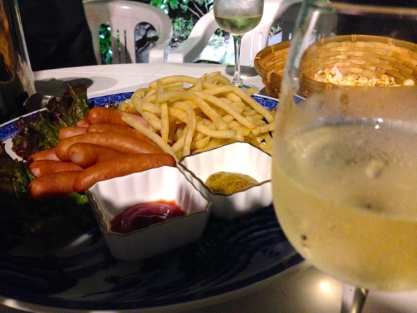 ホタテ焼き、玉こんにゃく煮、フランクフルト、混ぜそば、ソーセージなどいただき、夕飯としました。