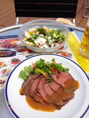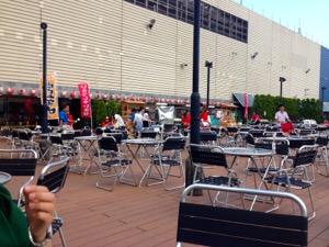 16時に新宿駅西口改札で待ち合わせ。汗が流れる。ここ数日続きの暑さのなか、いったいどうなるんやろうと心配したけど、屋上に上がると想定外に暑くなく。なんなんだろう。白い雲はあるにしても青空だし、日陰というわけでもないのに、かんかん照りの直射日光はなく。風もそこそこあって、汗をかくこともなく快適でした。