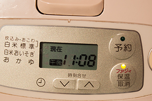 炊飯器は20年ぐらい前から使ってる年代物です。時間設定はしていないのでこの時間はうそです。電源を抜くと時間を忘れてしまうのが困ったちゃんなのです。