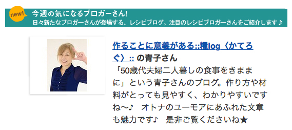 レシピブログのウィークリーメールマガジン(10/4付)で紹介していただきました。