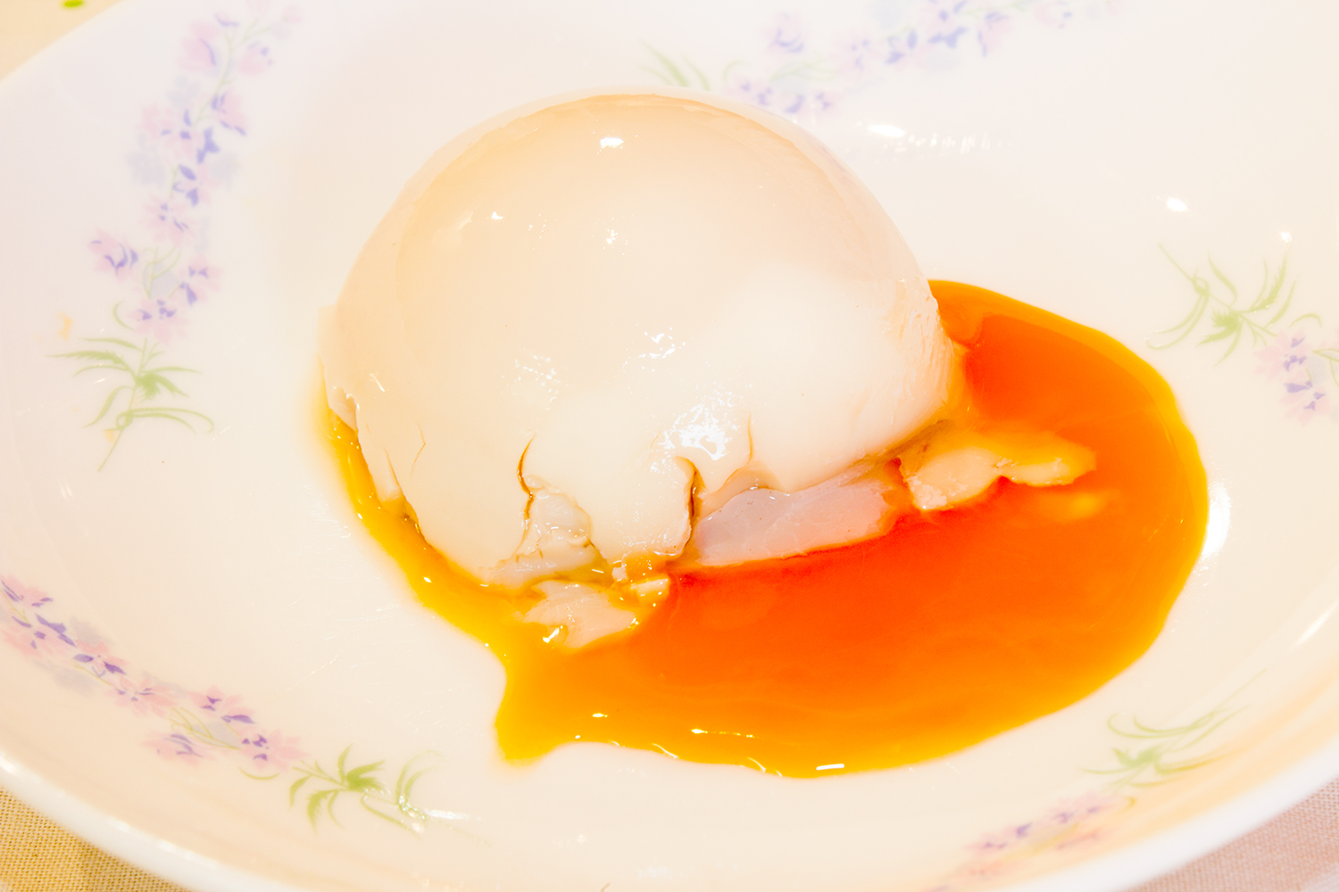 剥がれた部分は、黄身が真ん中になっていなくて、白身部分が薄くなっていました。次回は普通の作り方で、菜箸でころころ転がしながら黄身を真ん中にしてやることで、白身の厚さが均一になるように茹でようと思います。