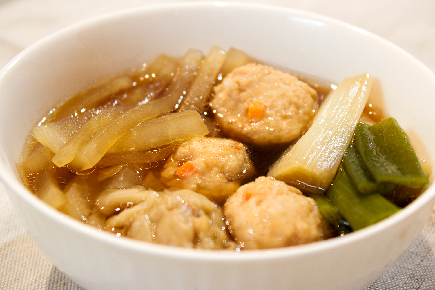 オイスターソースは砂糖代わりみたいな感じで使いました。 軟骨入りのつくねがバッチリ庶民的なお味で、お出汁も飲めます。