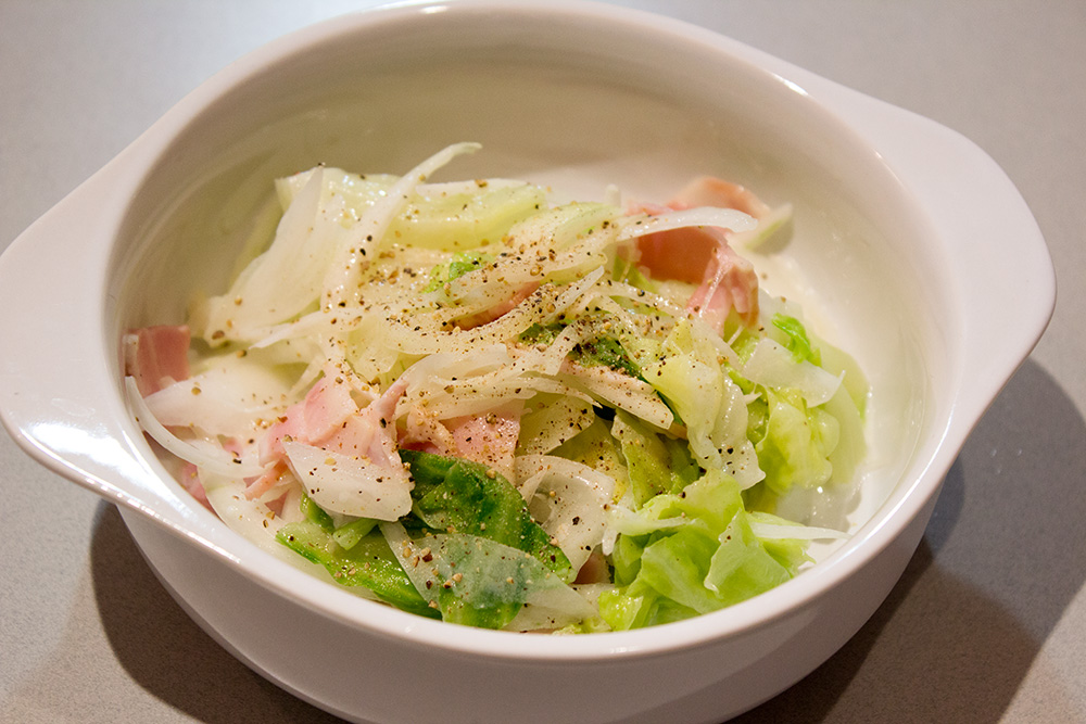 材料は、ほとんど日曜日の使い残りです。メイン食材には目新しいものを使うと、飽きないと思います。