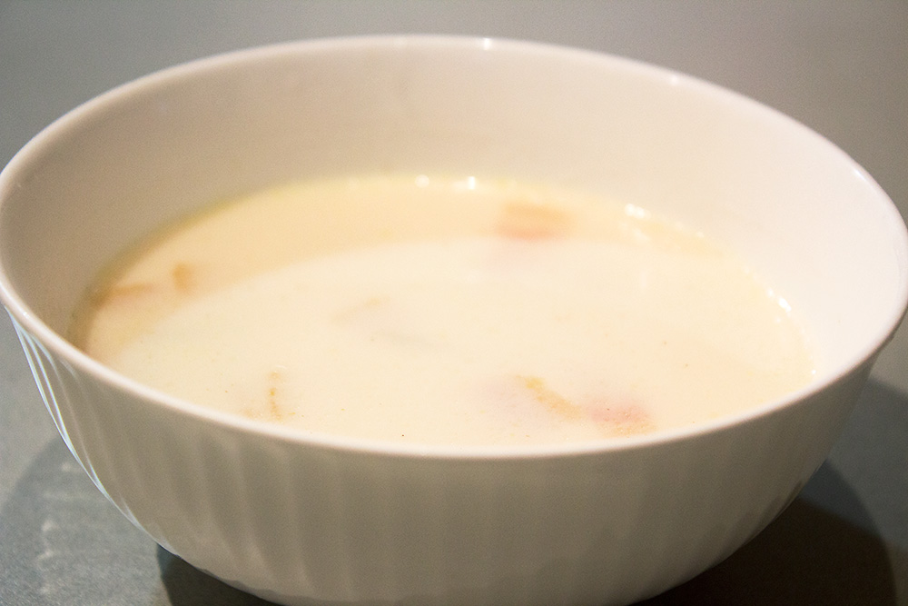 Cの牛乳は、最後に入れて再沸騰直前で火を止めるのが良いが、この牛乳は開封して日にちが経っていたので沸騰させました。