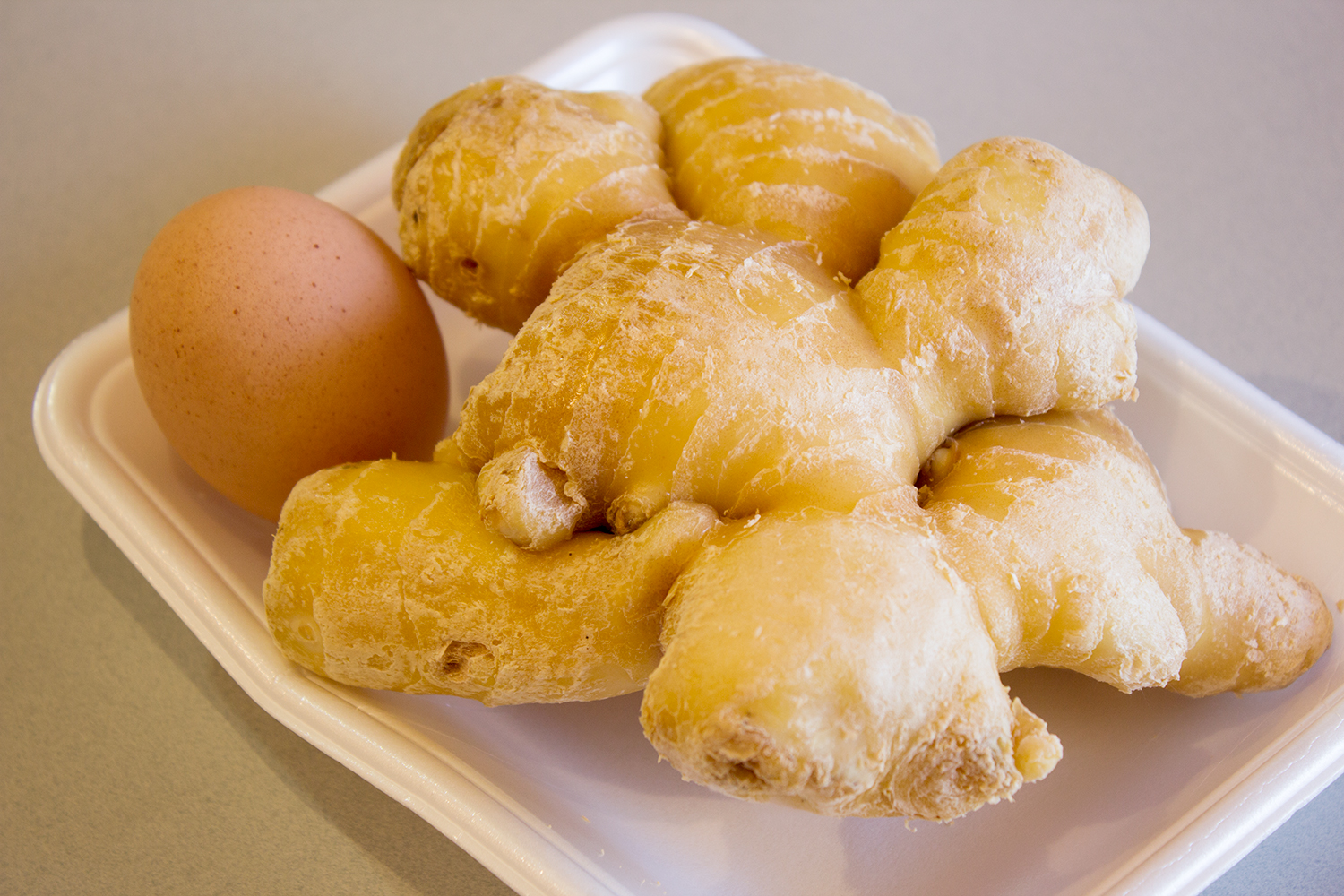 定規を置いてみましたが、いまいちピンときそうにないかもと思い、卵を置きました。とにかくでかいっていうことをわかってほしかったのです。これで200円です。容器に入りそうにない感じでしたので1/8くらいは残しました。