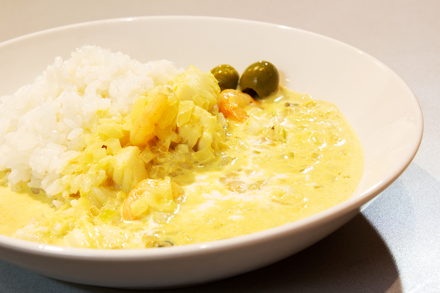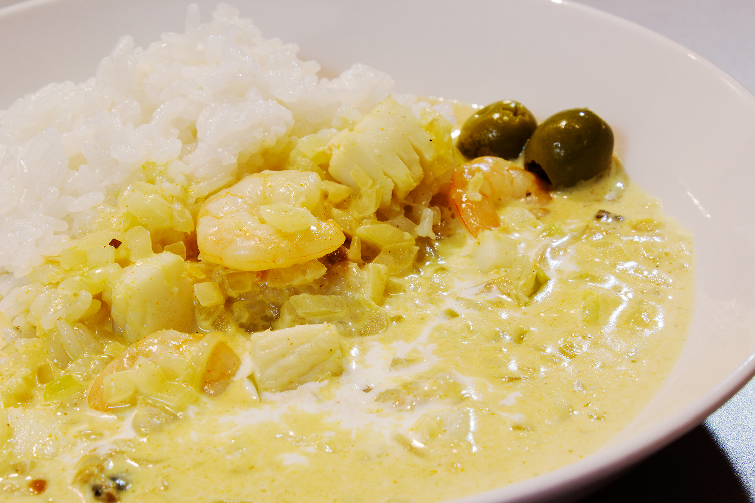 パスタにも使えるソースです。きょうはご飯を炊く日だったので、カレーライスにしました。