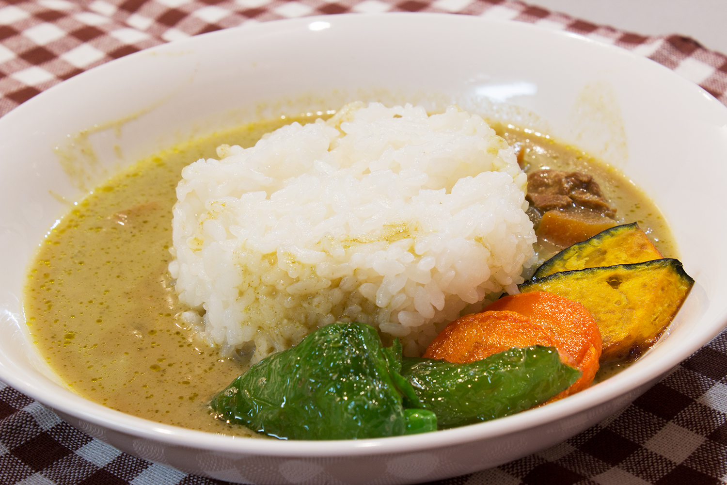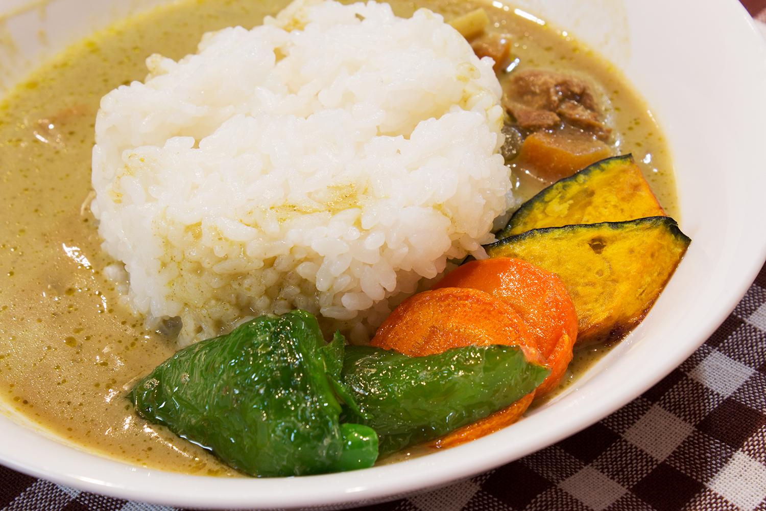 前回のタイカレー〈レッド〉より1辛強い4辛です。最初の口当たりのココナッツミルクの甘さが逆に気になります。刺激物に弱い青子にはティシュ必須。汗どころか、体のいろんな部分から水分が噴出します。