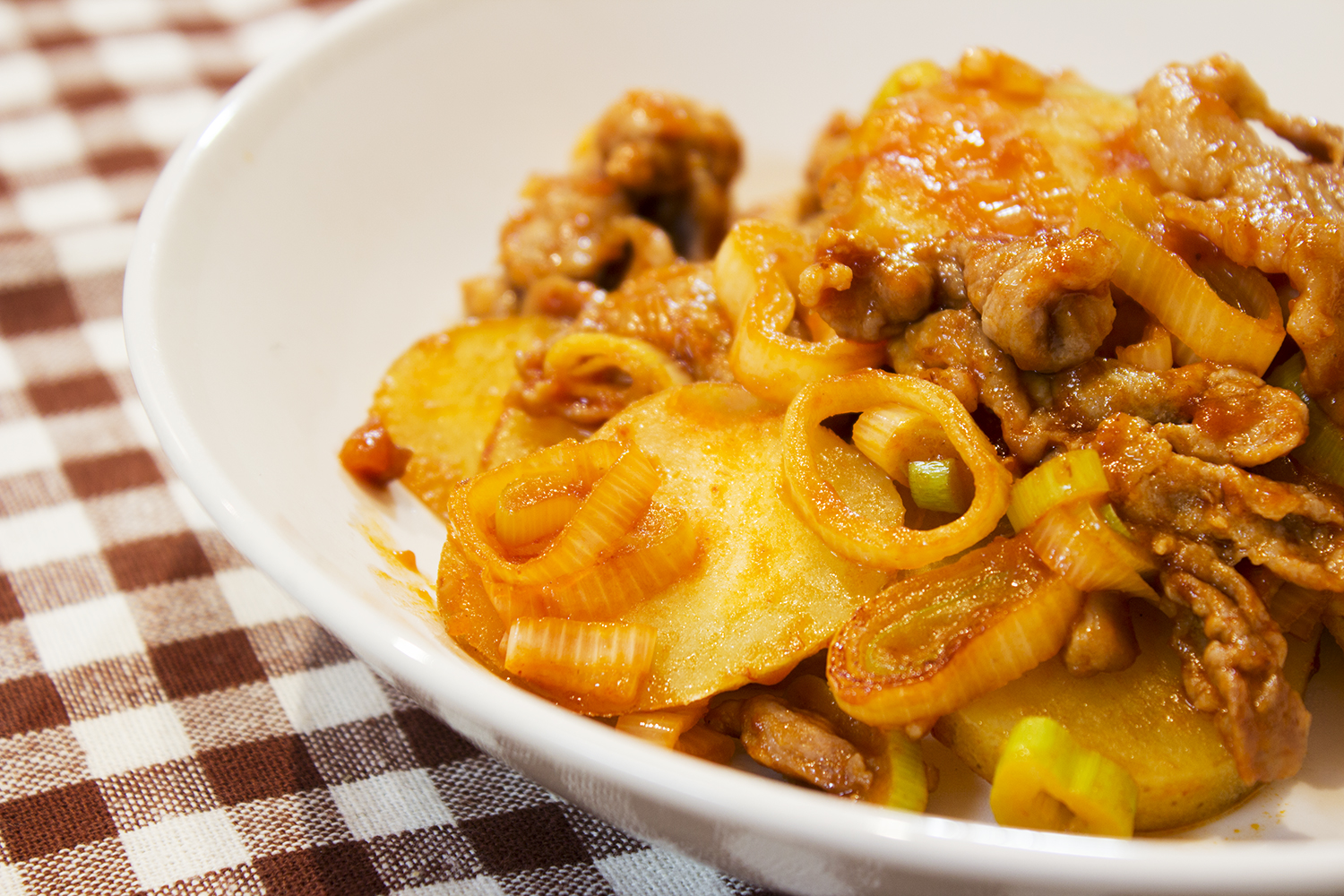 今回じゃがいもを皮のまま使いますが、芽の部分と緑色っぽい皮の部分は毒性があるので取り除いてください。特に春頃の芽吹く季節では、芽の部分を深く抉り取るか、勢いよく芽の出たじゃがいもは食べない方がよいです。