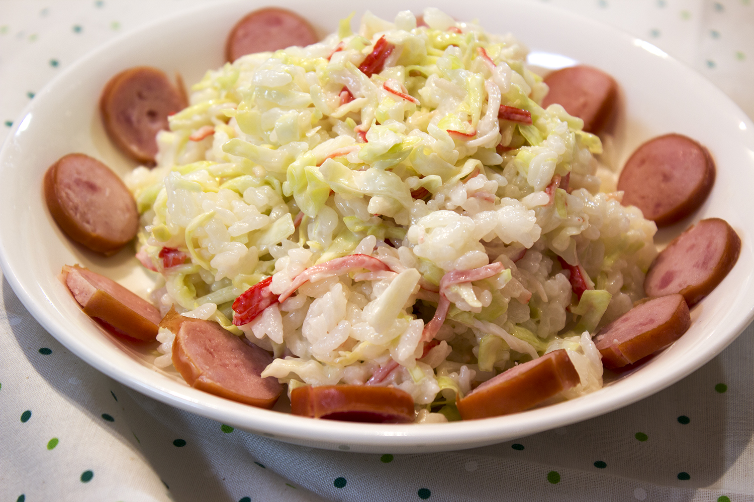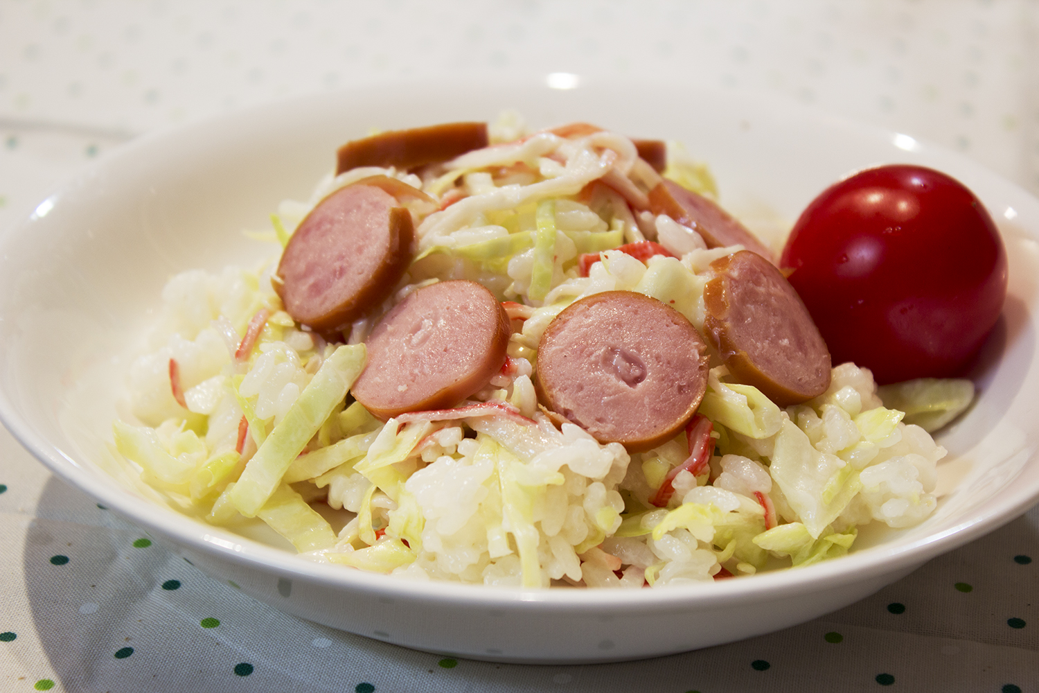 マヨネーズとの相性もよいで寿司(!)、シャキシャキキャベツとシャリの食感の混在が楽しめました。盛りつけ次第でカフェ風ランチにもなりそう。