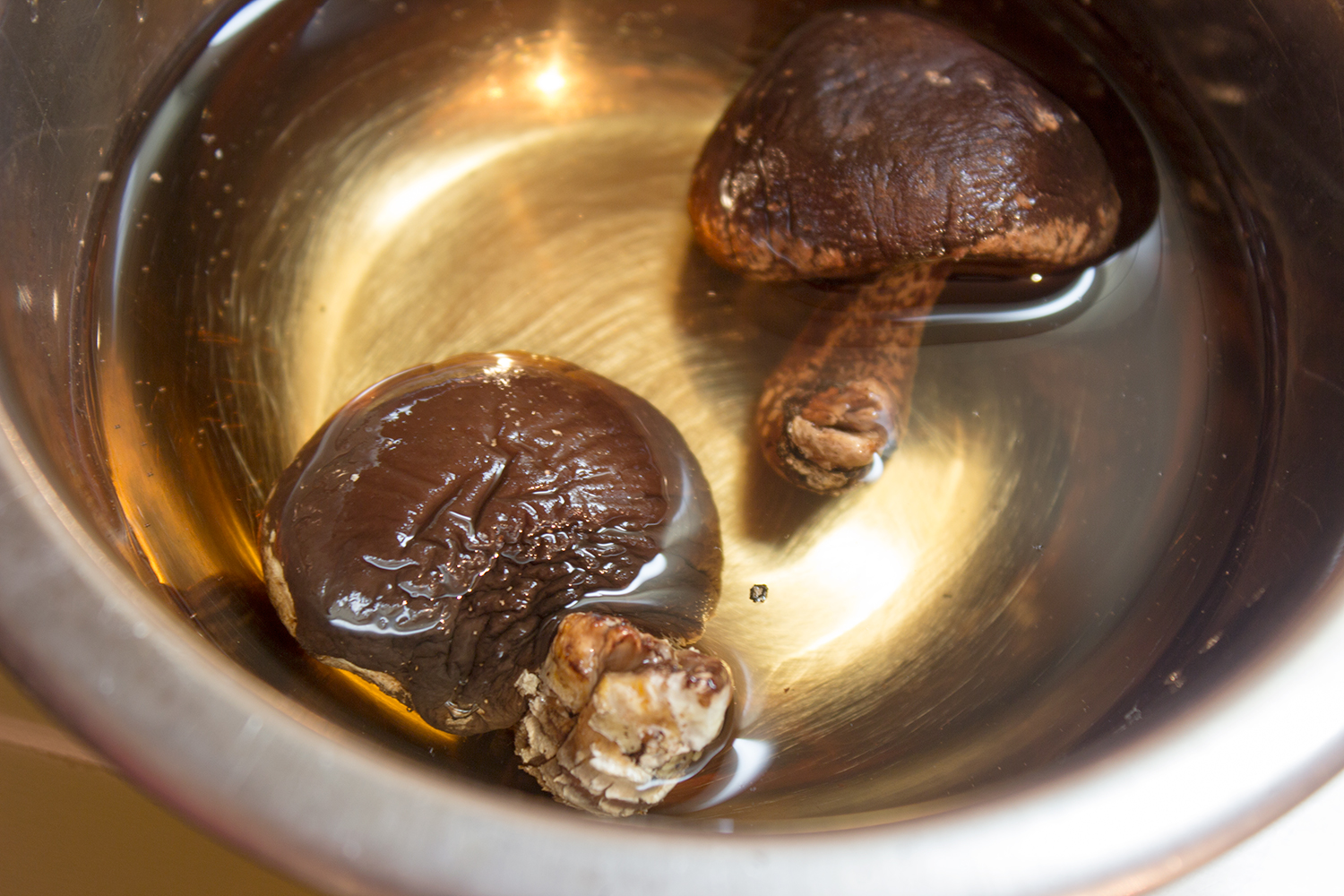 干し椎茸は市販品ではなく、生椎茸を(ラップしたりタッパーに入れたりせずそのままで)冷蔵庫に放置して乾燥させたものです。