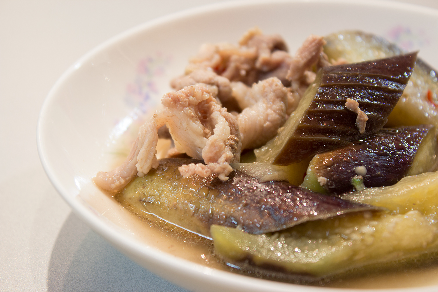 昨日作ったメニューです。普通は油をたっぷりめにしいてナスを炒めると思うのですが、そうすると油を使いすぎるので、我が家では炒めません。でも、油分があったほうがおいしいので、煮る途中で少量加えます。