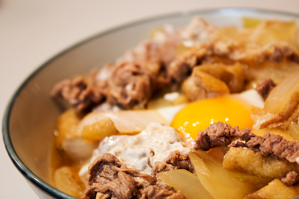 夫は生卵派なので、丼にぶっかけたあと、生卵を割ってました。てか、それが普通でしょうか。牛丼店でたまご注文したことないのでよくわかりません。