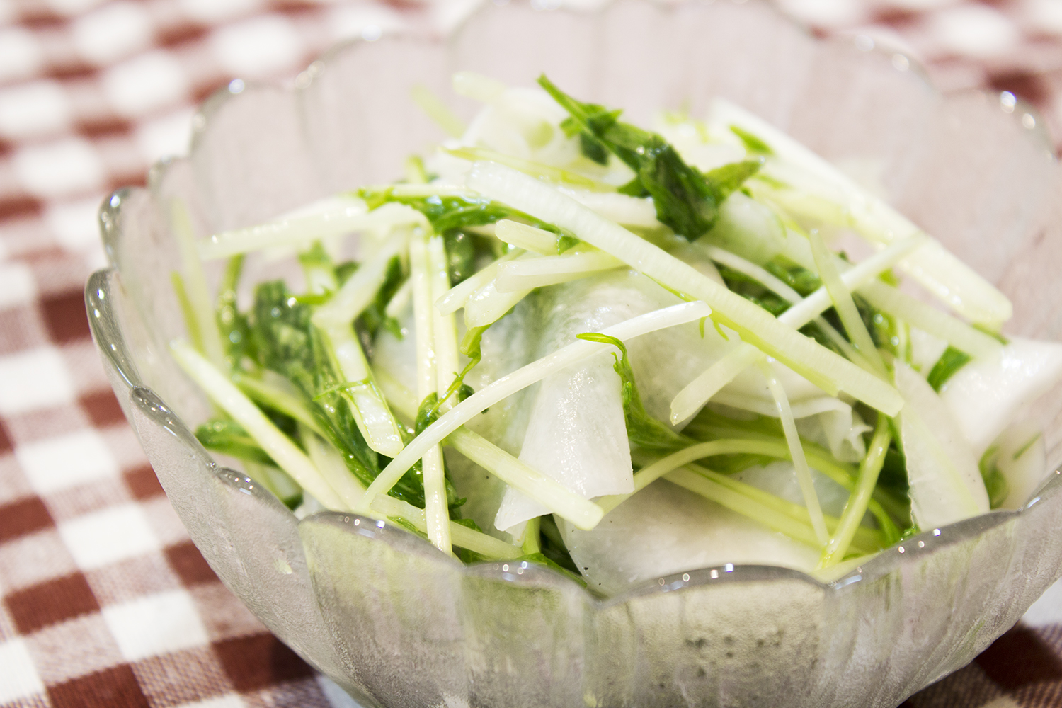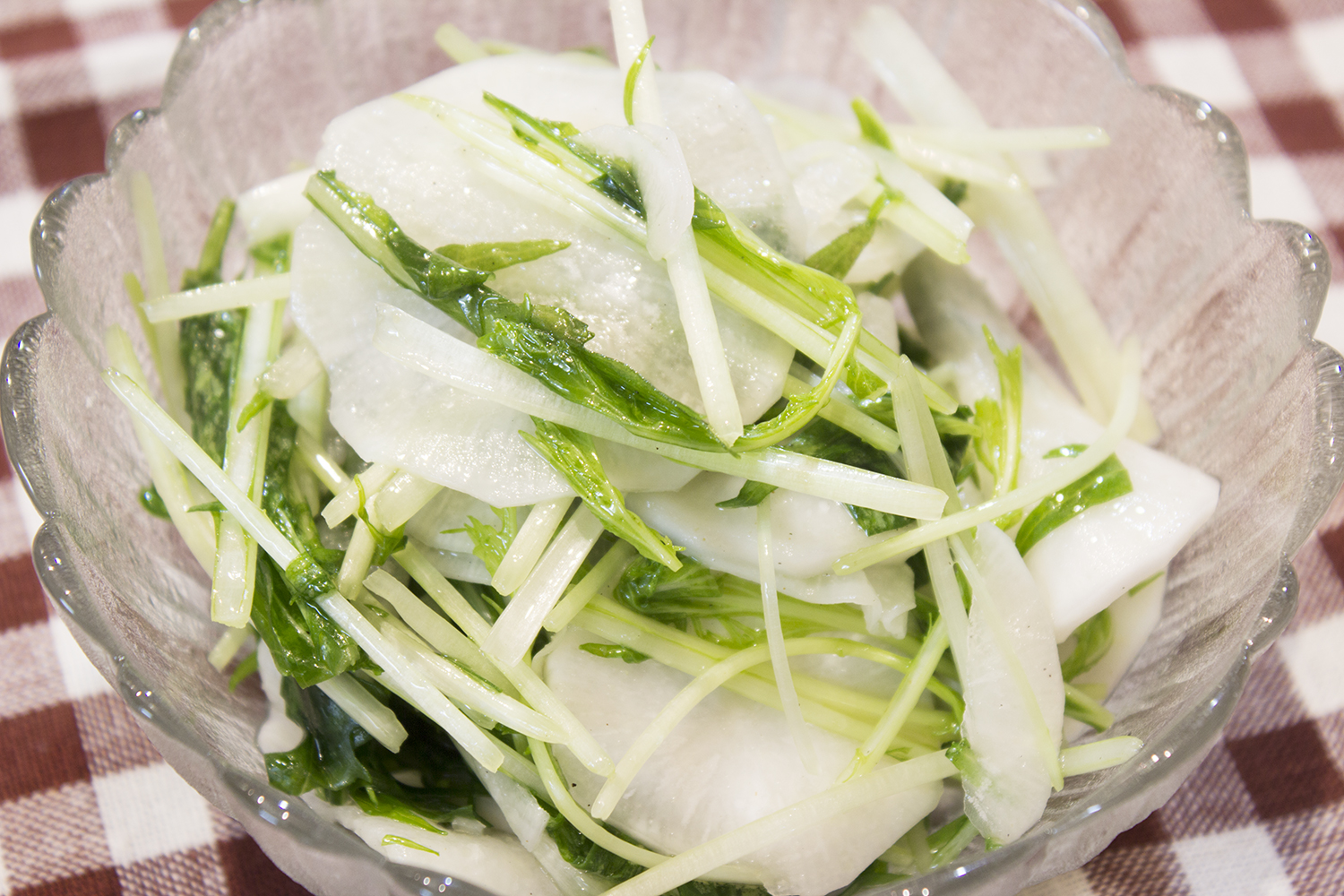 カルダモンは爽やかな香り。夏にも涼しくいただけそうなメニューになりました。でも水菜って意外にも冬野菜なんですってね。そういえばお鍋に入れたりしますね。