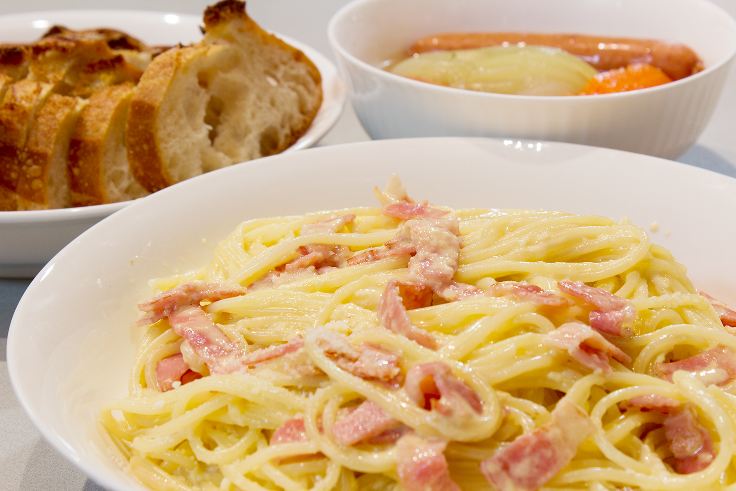 カルボナーラを初めて作りました。主婦歴通算20年、今まで作る機会がなかったことが不思議です。20年なんて、あれしよう、これしようと思っているうちに、あっという間にすぎちゃうんです。これからの20年を悔いなく大切に生きよう。